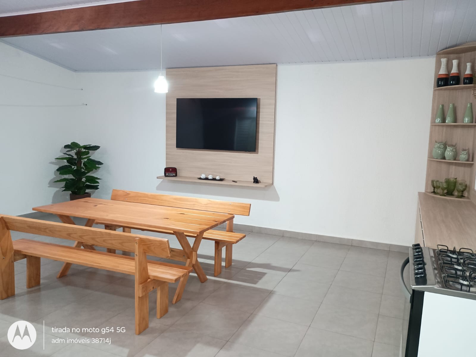 Espaço Gourmet com fogão, Geladeira, Tv, Churrasqueira, Mesa e Armarios Novos.